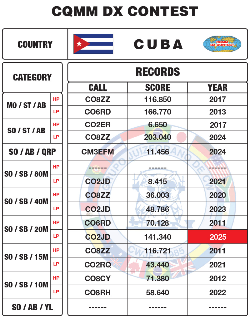 All Time Records Continental Records - South America - Europe - North America - Asia - Oceania - Africa YL - Records QRP - Records Country - Records